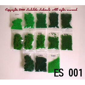 樹木キットで使用する着色スポンジの葉の有償サンプルです。葉の色をリストで表現するのは極めて困難です、特に緑色のE-801〜E-812はすべて緑です。一応サイトの上で色が分かる広告を掲載しましたが、実際の色とは異なる部分も有ります。そこで提案ですが、里山工房の手許にある3グラムずつの有償サンプルを購入されてはいかがでしょうか? もしお手許に残ったとしても緑のサンプルは樹木の制作に役立ちます。ただし包装に大変手間がかかりますので、割高になっています。送料込み価格です。